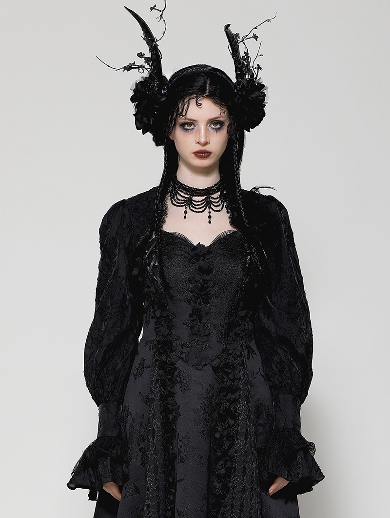 Black Gothic Dark Pattern Puff Sleeve Shrug for Women