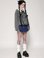 Gray Gothic Bat Print Academy Style Pullover Sweatshirt for Women