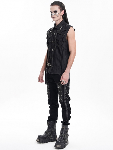Black Gothic Punk Cross Strap Sleeveless Shirt for Men