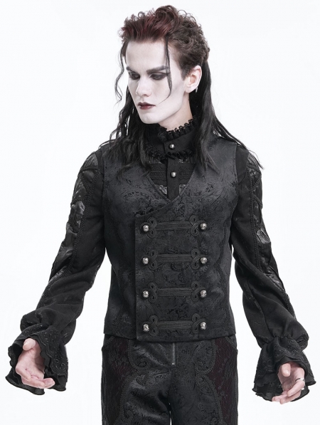 Black Gothic Vintage Pattern Double Breasted Party Waistcoat for Men