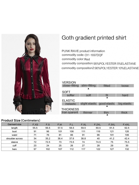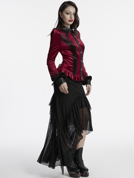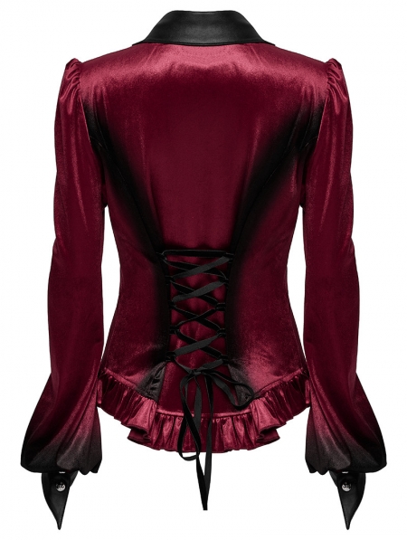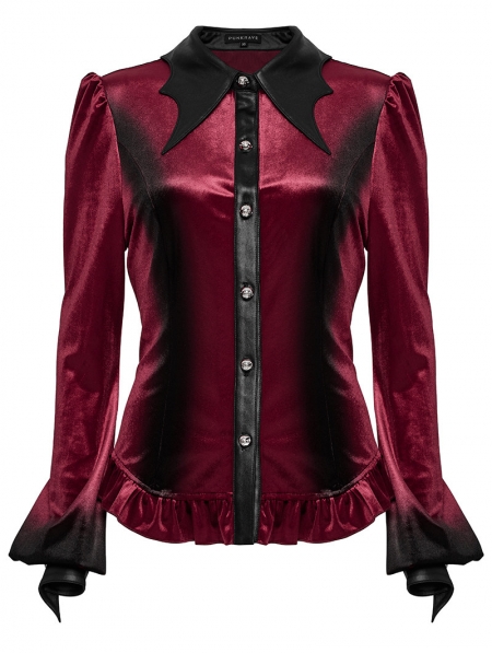 Red Gothic Gradient Velvet Bat Collar Long Sleeve Shirt for Women