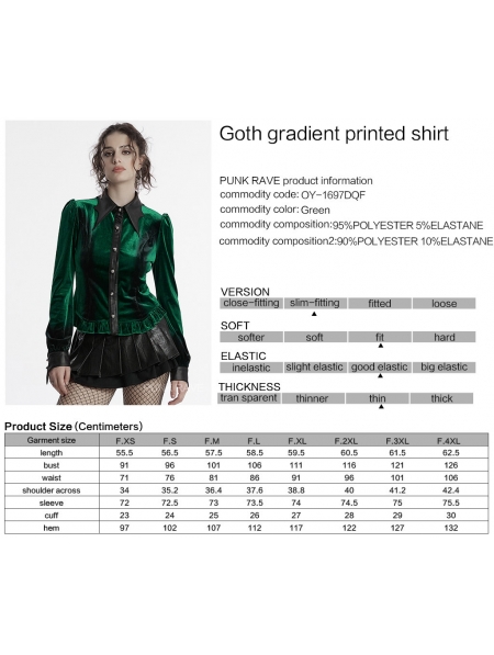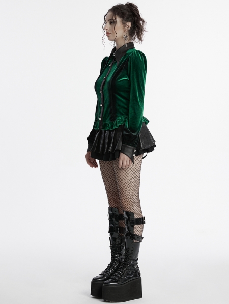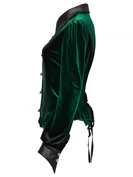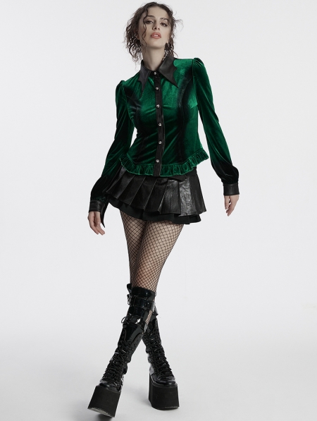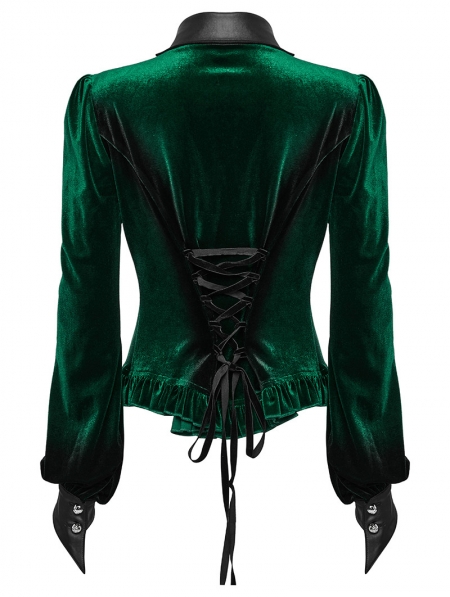 Green Gothic Gradient Velvet Bat Collar Long Sleeve Shirt for Women