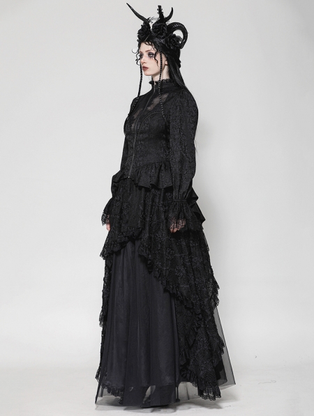Black Vintage Gothic Jacquard Lace Sheer Tailcoat for Women