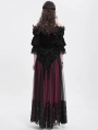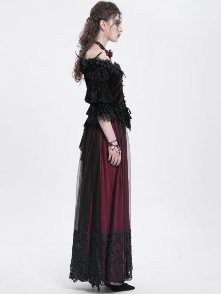Red Gothic Elegant Lace Applique Mesh Maxi Skirt