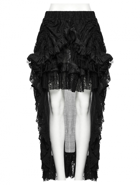 Black Gothic Retro Irregular Lace Ruffled High-Low Skirt