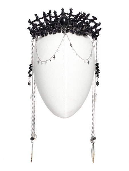 Black Gothic Gorgeous Crystal Chain Tasseled Headband