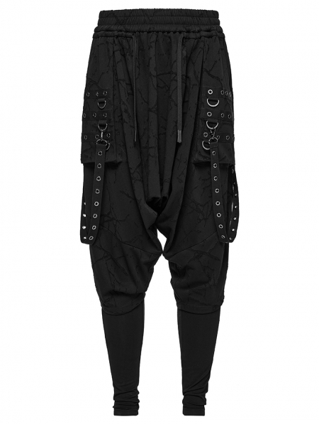 Black Gothic Punk Textured Drop Crotch Pants for Men