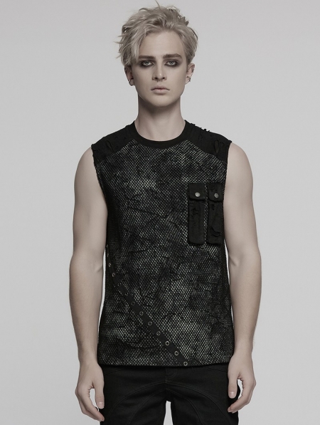 Black Gothic Punk Mesh Splicing Vest Top for Men