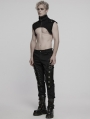 Black Gothic Punk Denim Stand Collar Short Vest for Men
