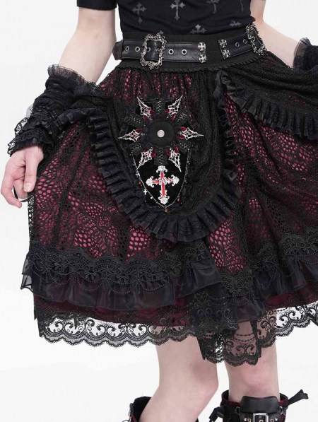 Black Gothic Cross Lace Frilly Coffin Headwear