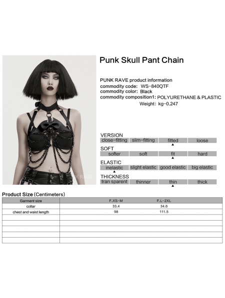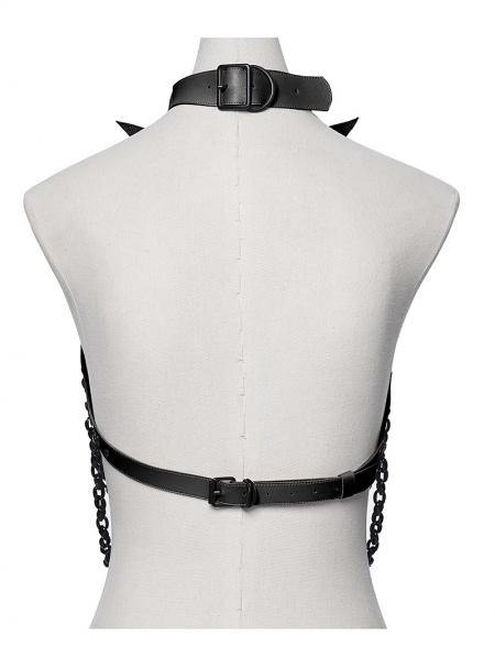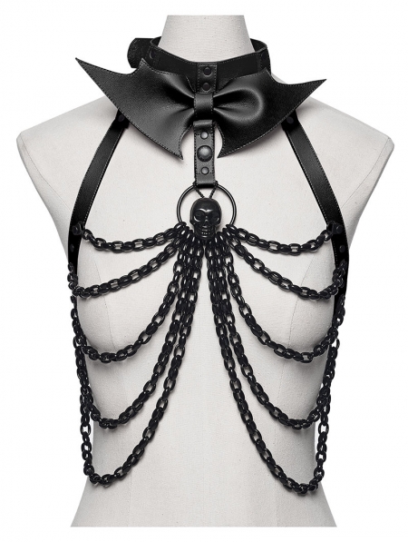 Black Gothic Punk Bat Bow Skull Chain Harness