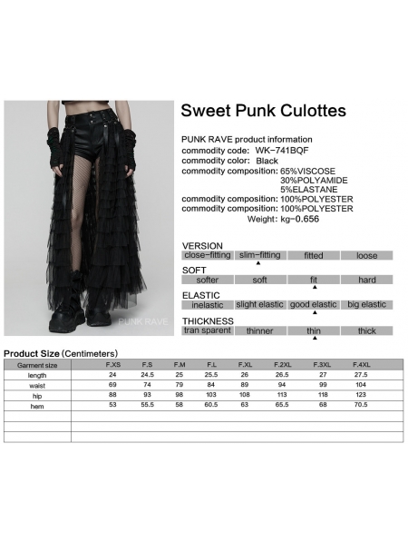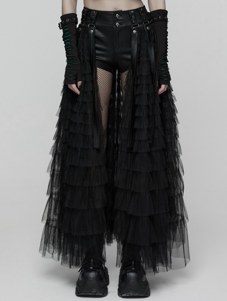 Black Gothic Sweet Punk Shorts with Tulle Skirt