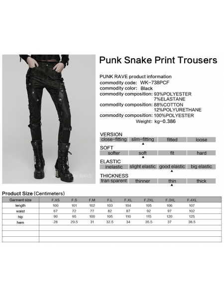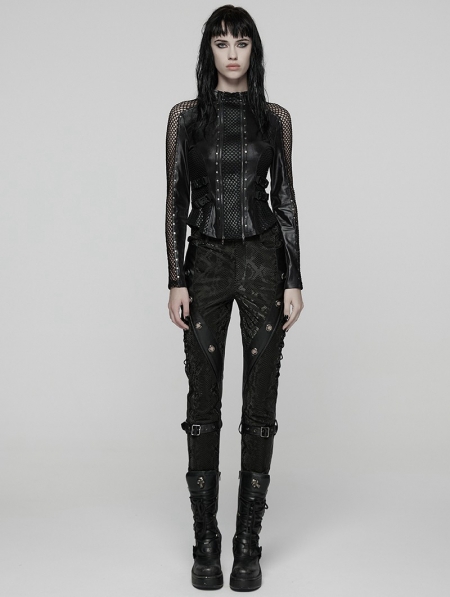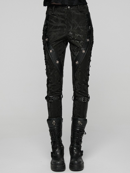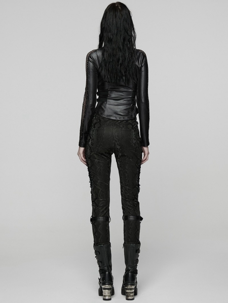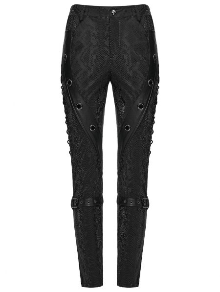 Black Gothic Punk Patchwork Snake Print Trousers for Women