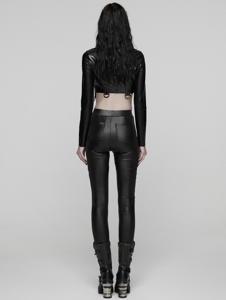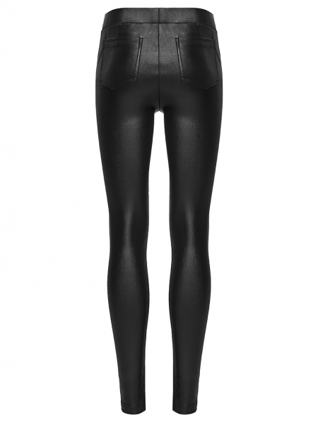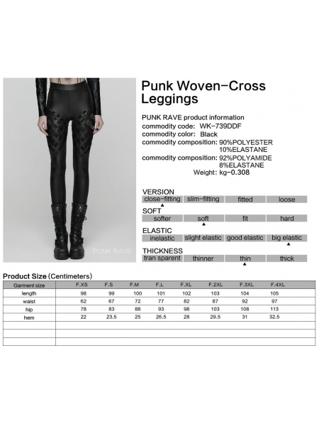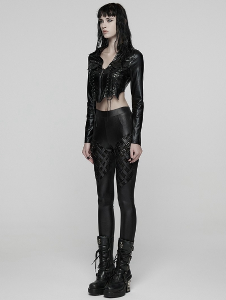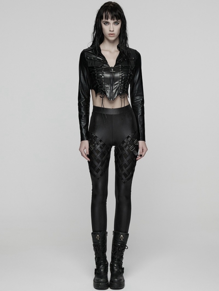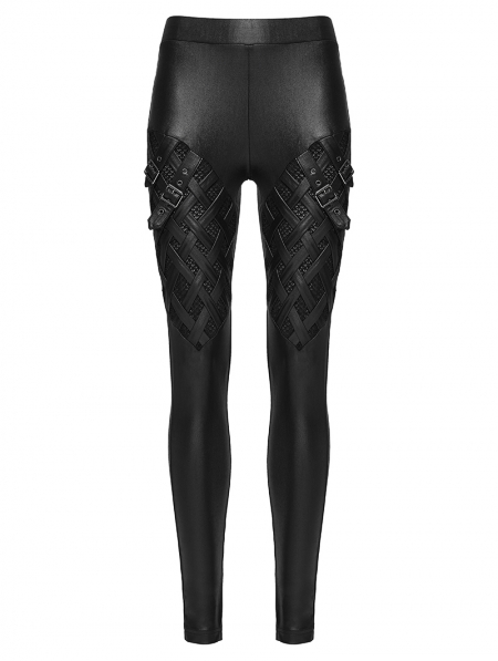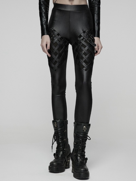 Black Gothic Punk Woven-Cross Panelled Leggings for Women