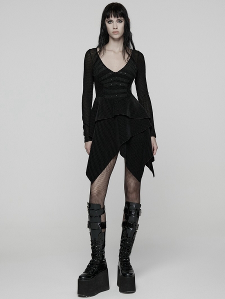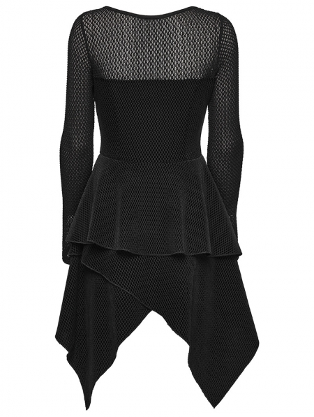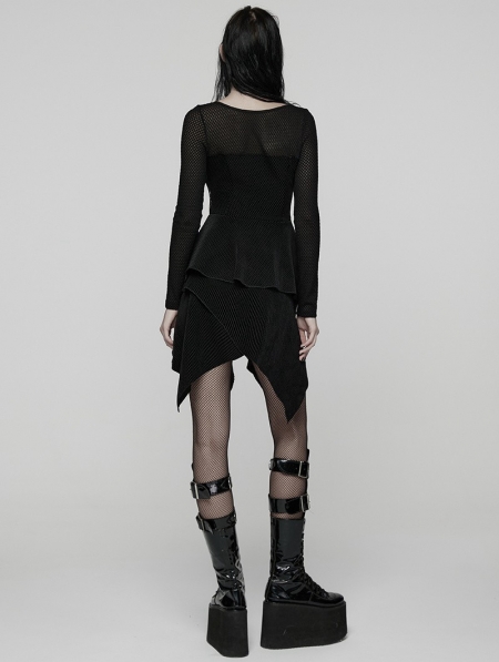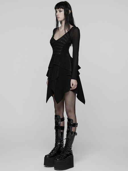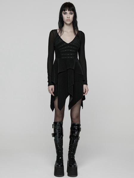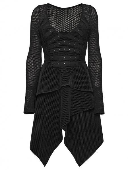Black Gothic Punk Rivet Mesh Layered Irregular Dress