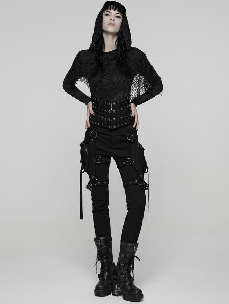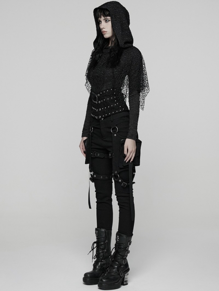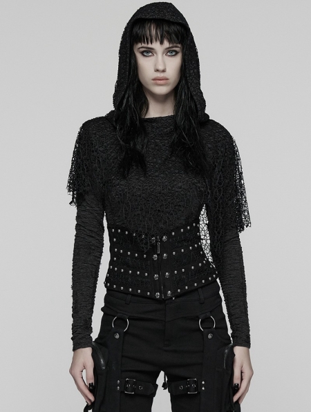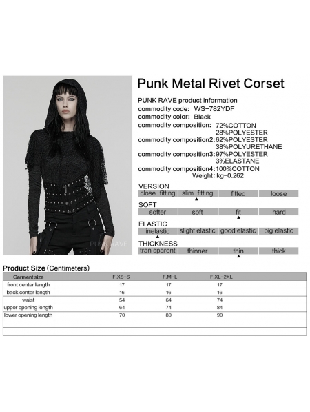 Black Gothic Punk Metal Rivet Underbust Corset Waistband