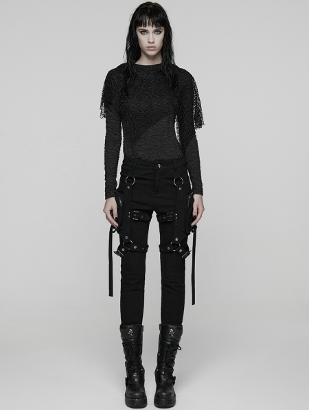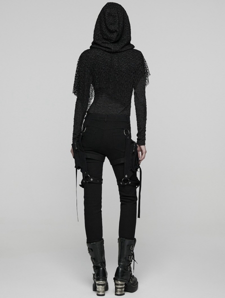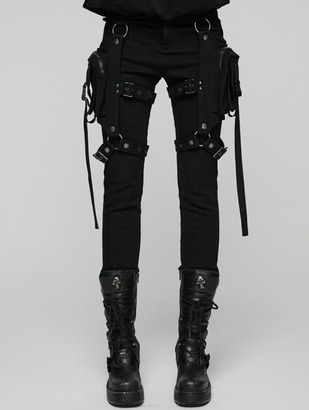Black Gothic Punk Detachable Leg Pockets Pants for Women