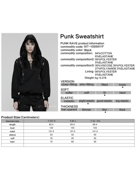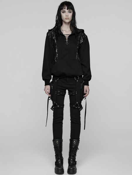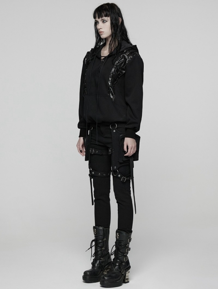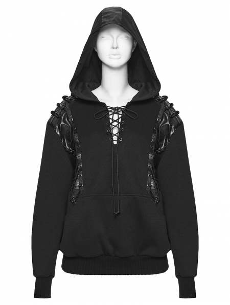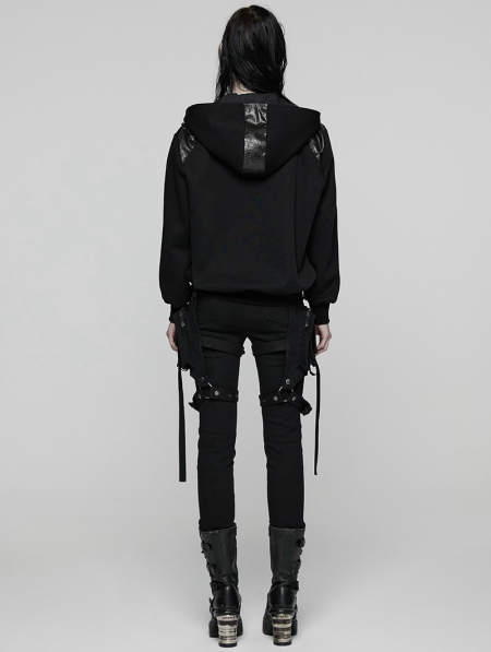 Black Gothic Punk Daily Wear Hooded Sweatshirt for Women
