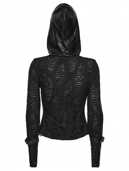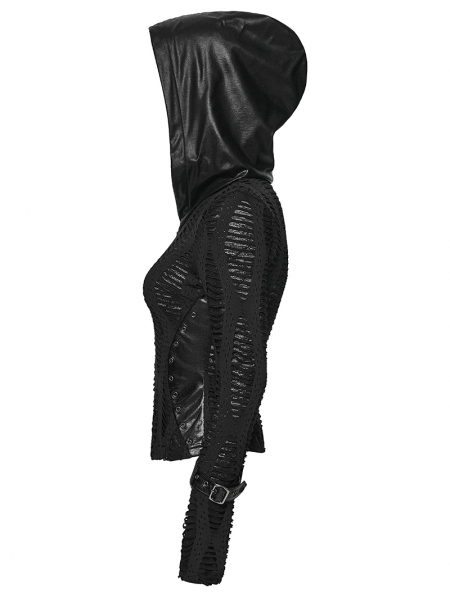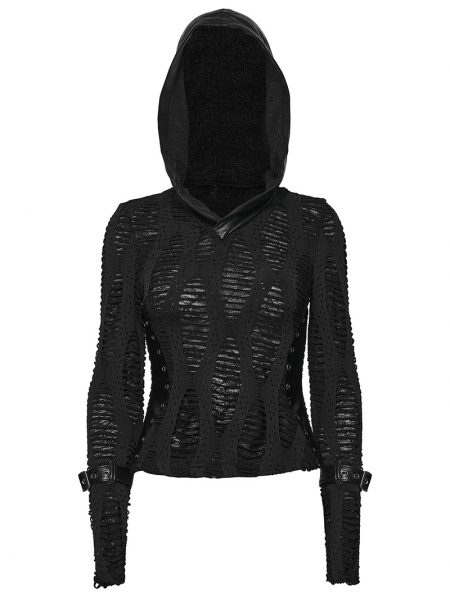 Black Gothic Decadent Punk Long Sleeve Hooded T-Shirt for Women