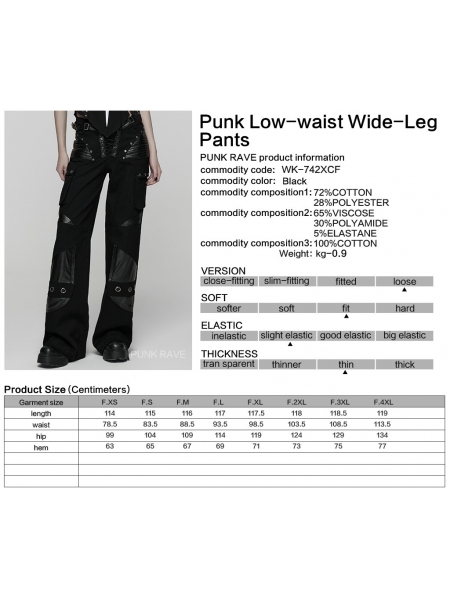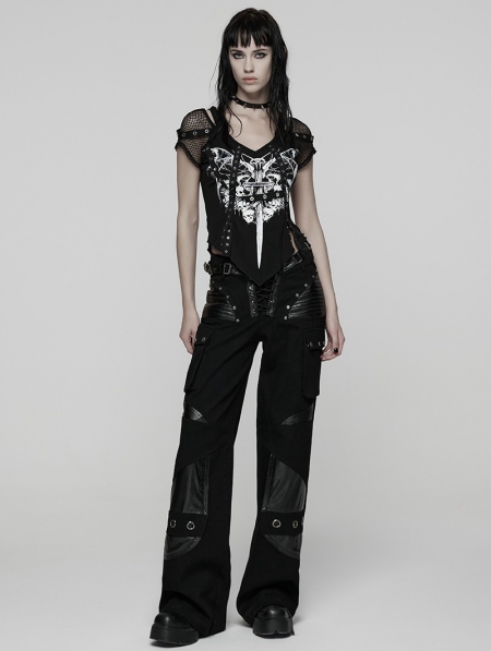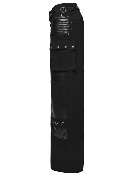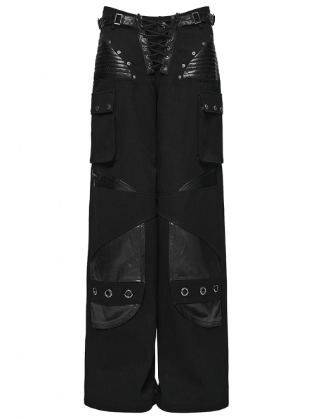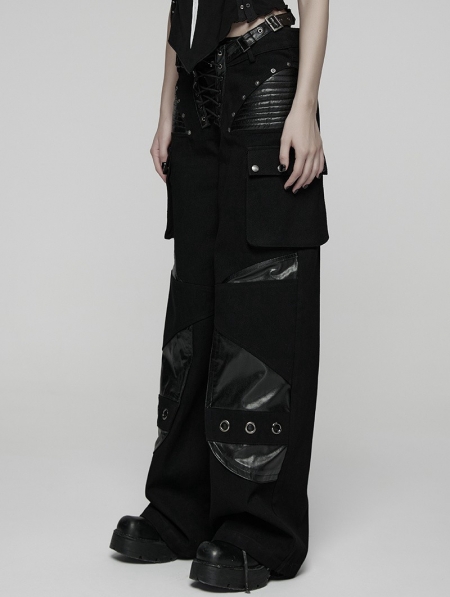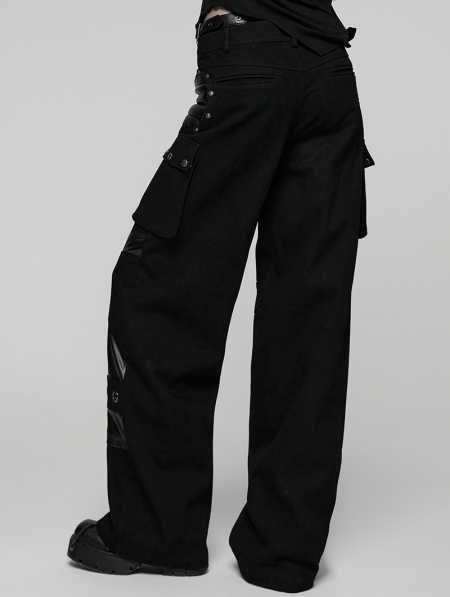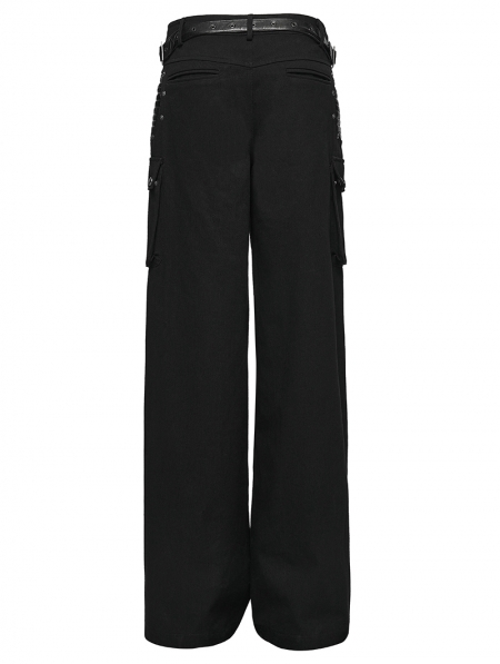 Black Gothic Punk Low-Waist Wide-Leg Pants for Women