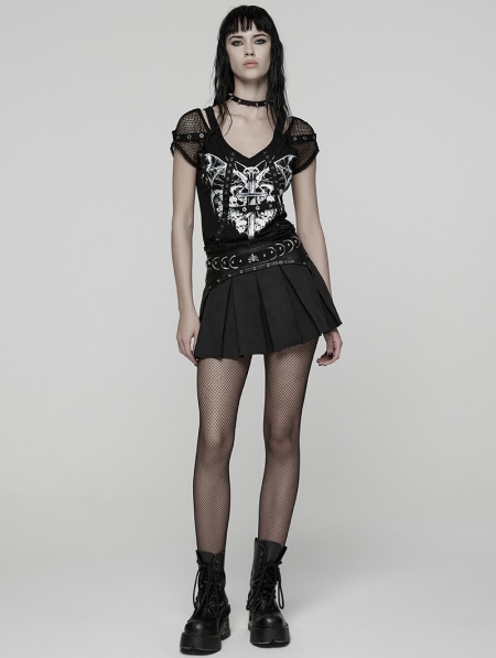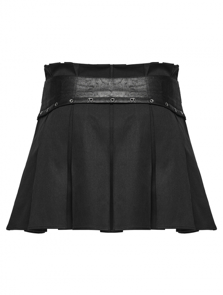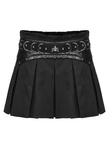 Black Gothic Punk Pleated A-Line Mini Skirt