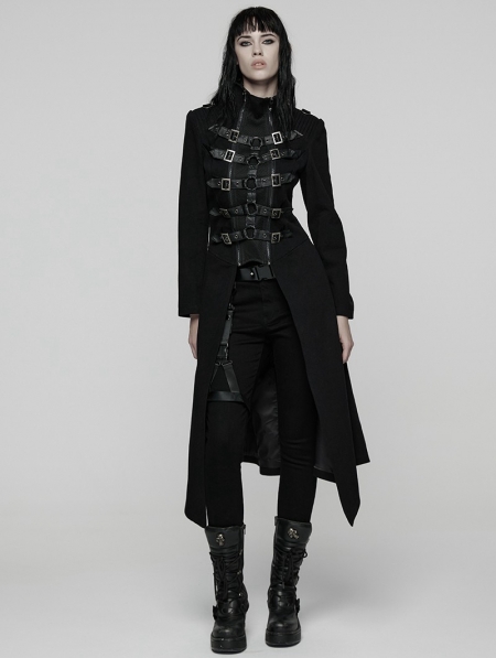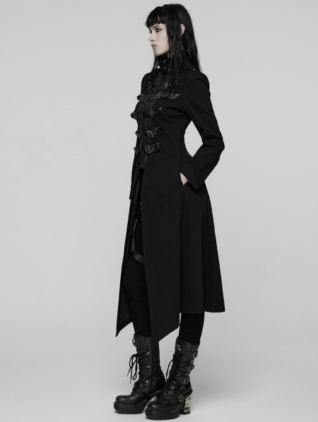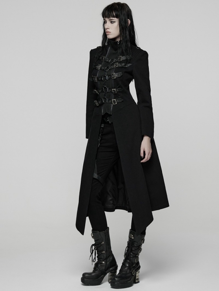 Black Gothic Punk Double-Zipper Skeleton Coat for Women