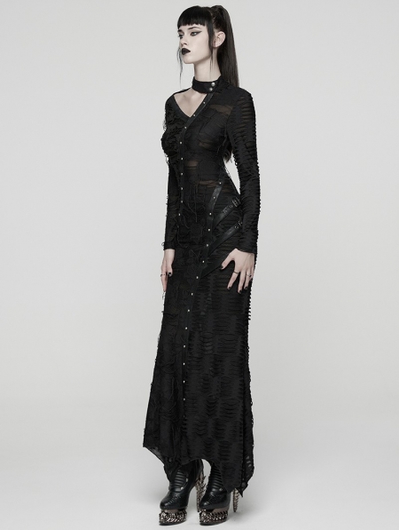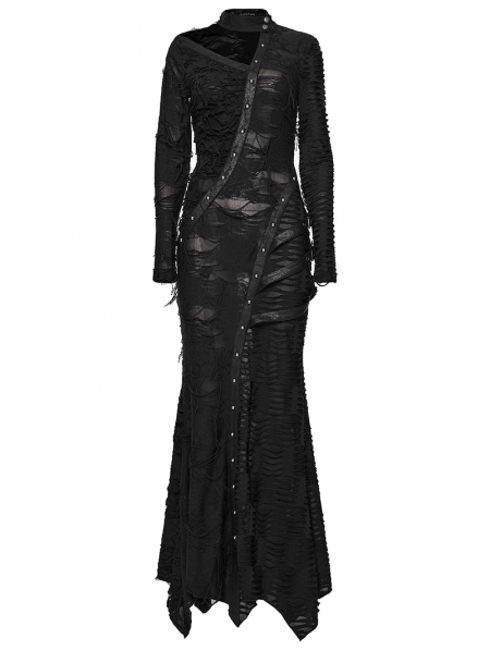 Black Gothic Punk Asymmetric Decadent Fishtail Maix Dress