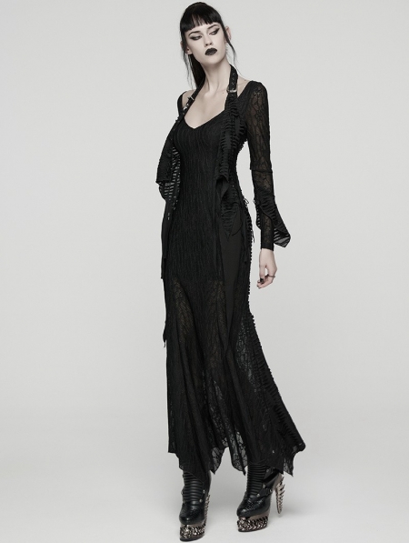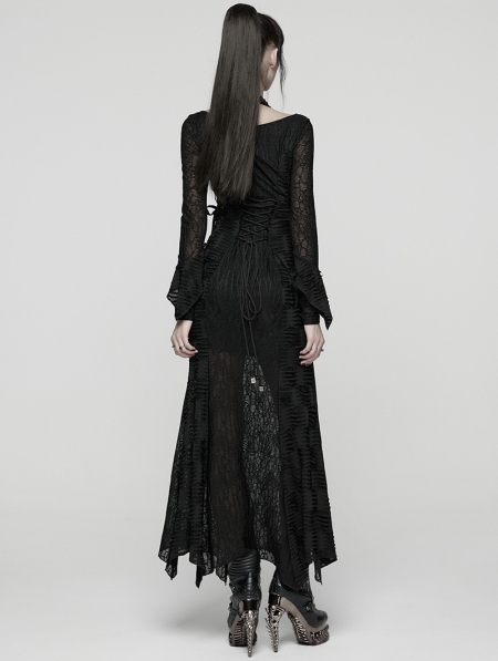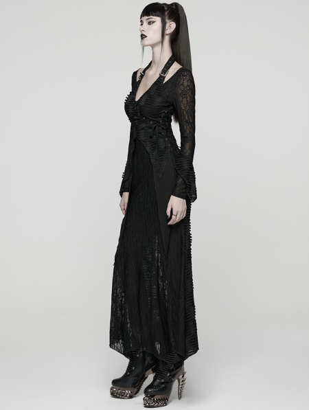 Black Gothic Punk Halterneck Asymmetric Long Dress