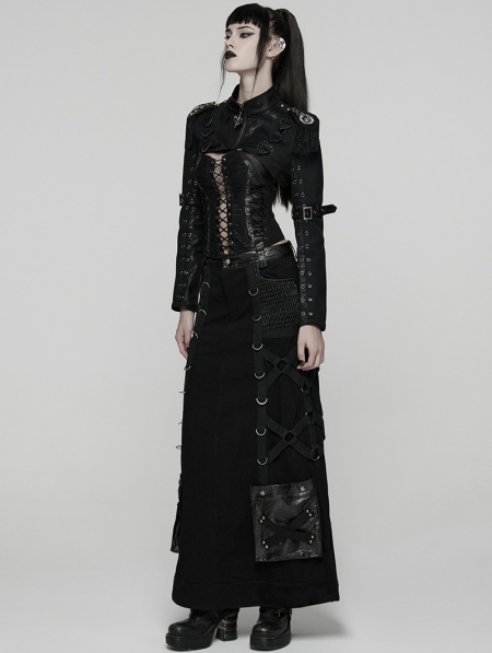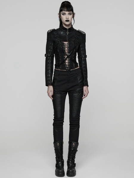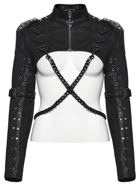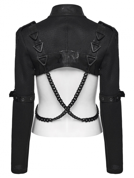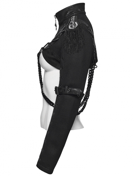 Black Gothic Punk Women's Cropped Jacket with Detachable Chain