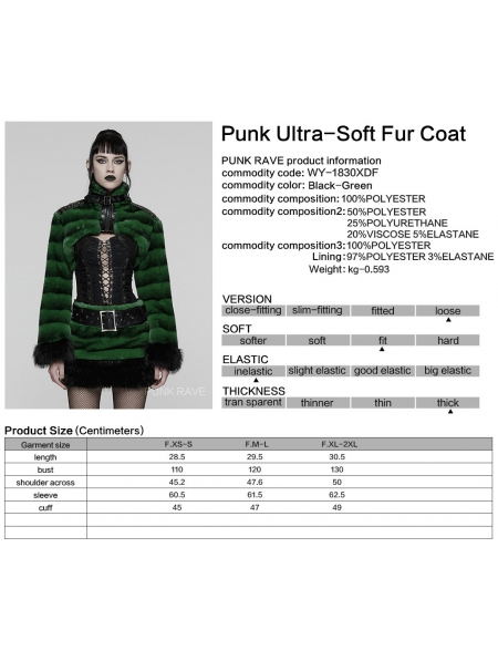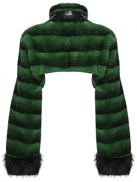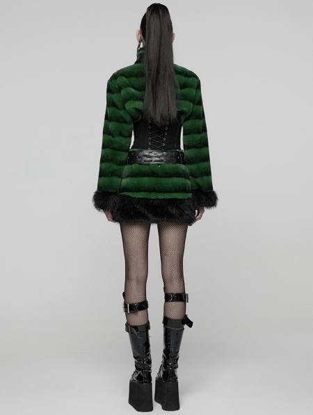 Black and Green Gothic Punk Striped Fluffy Fur Coat for Women
