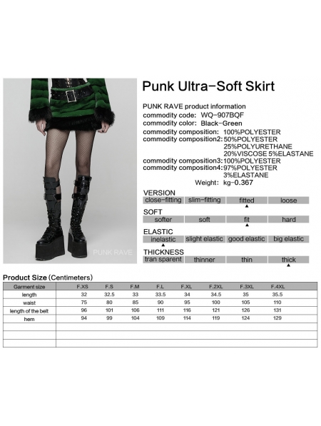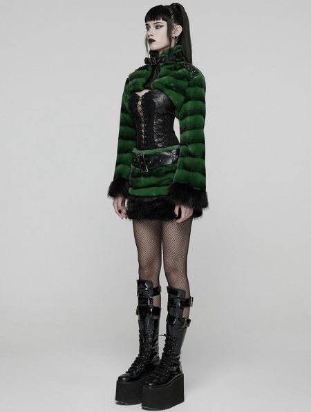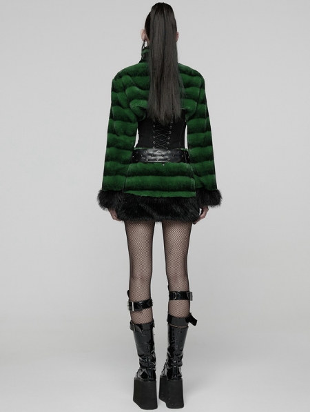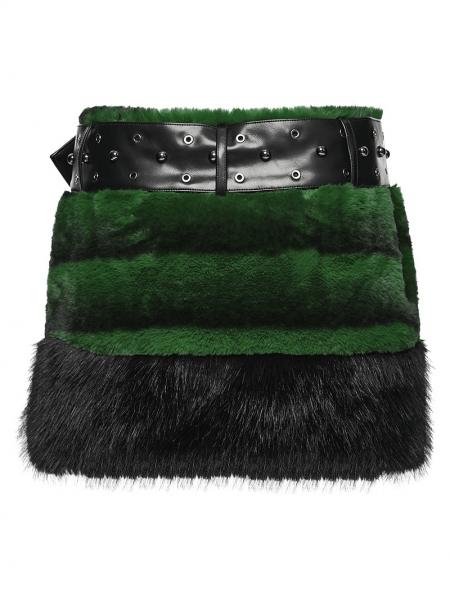 Black and Green Gothic Punk Striped Fluffy Fur Mini Skirt