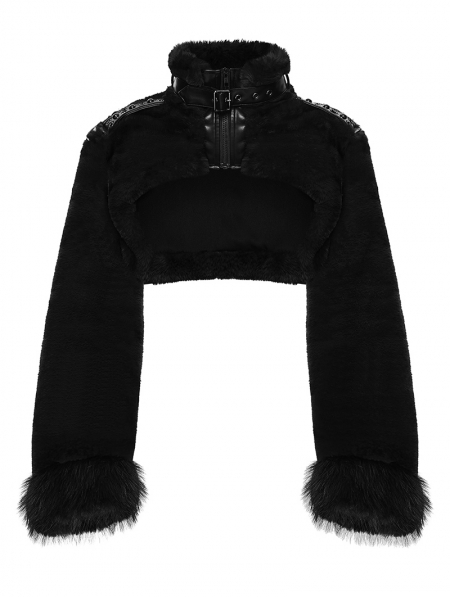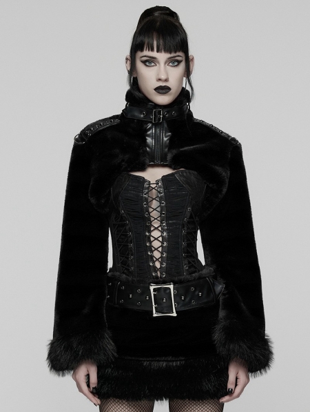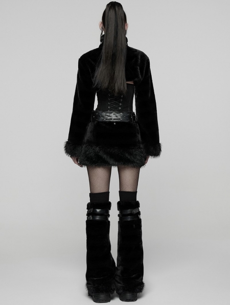 Black Gothic Punk Striped Fluffy Fur Coat for Women