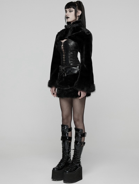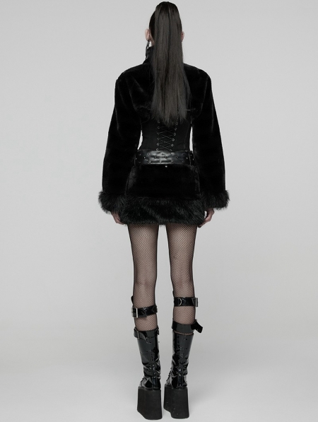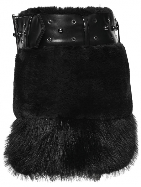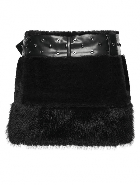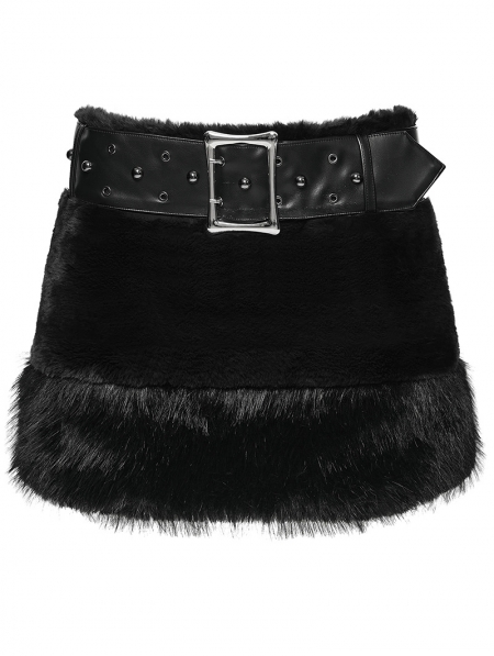 Black Gothic Punk Striped Fluffy Fur Mini Skirt