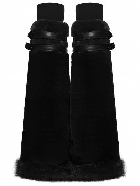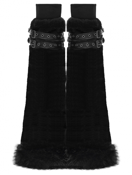 Black Gothic Punk Striped Fluffy Fur Leg Warmers