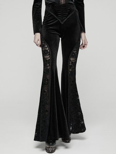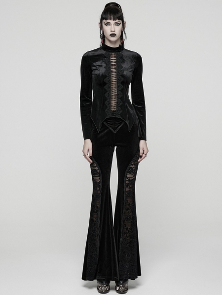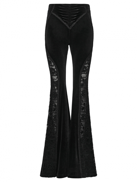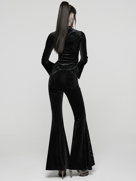 Black Sexy Gothic Velvet Flared Trousers for Women
