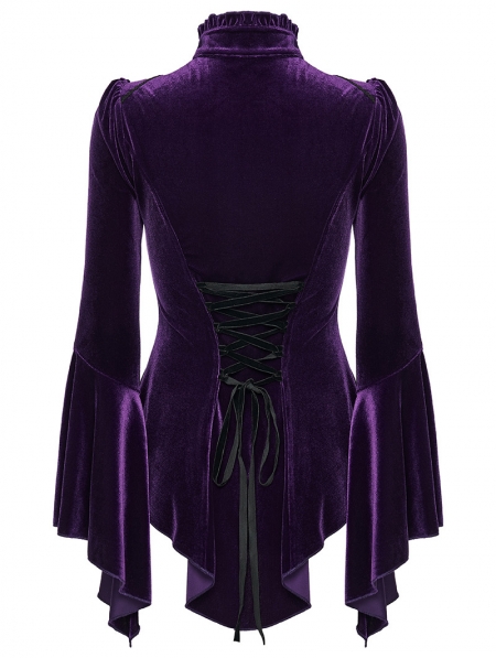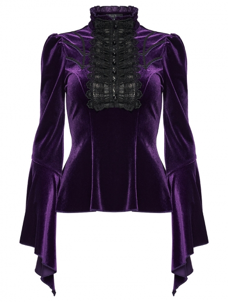 Violet Elegant Gothic Velvet Flared Sleeve Shirt for Women