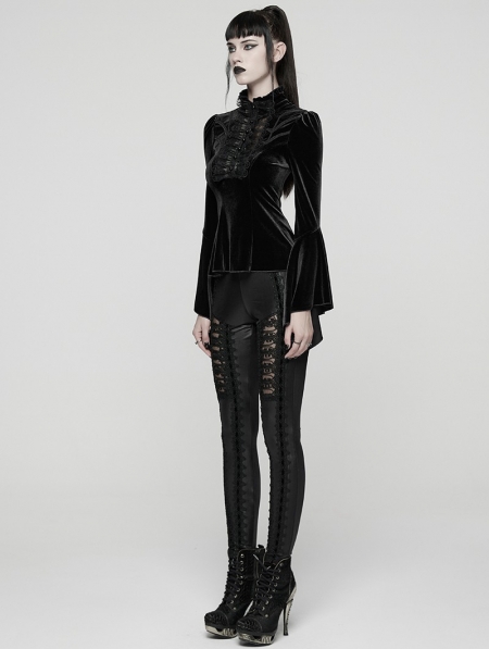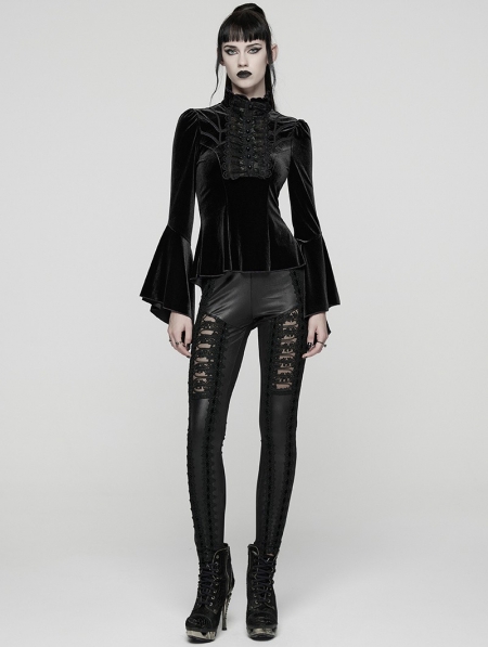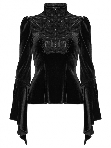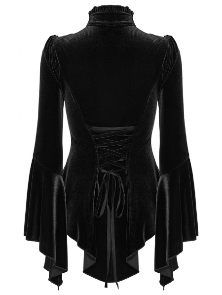 Black Elegant Gothic Velvet Flared Sleeve Shirt for Women