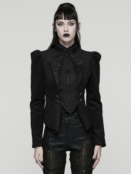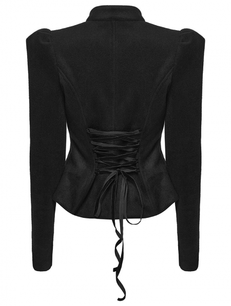 Black Retro Gothic Embroidered Short Woolen Coat for Women