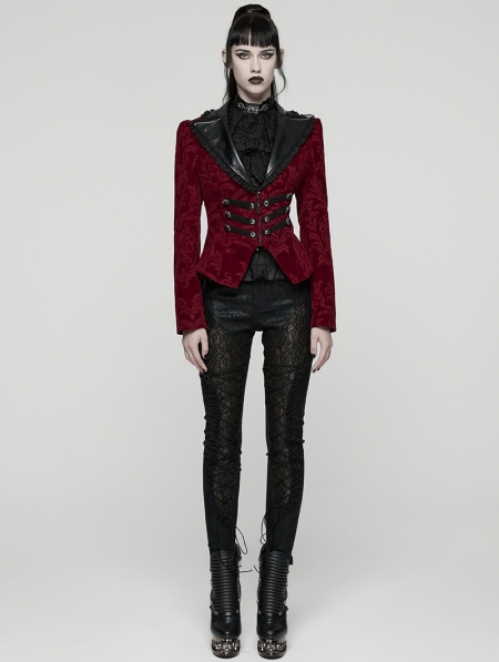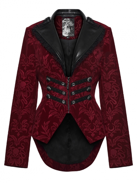 Red and Black Gothic Vintage Print Velvet Coat for Women