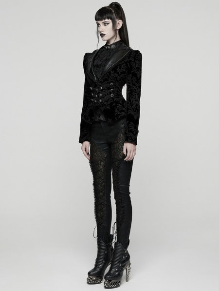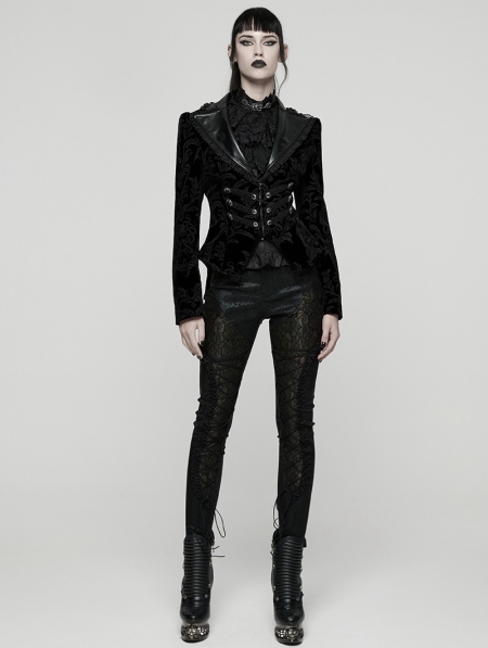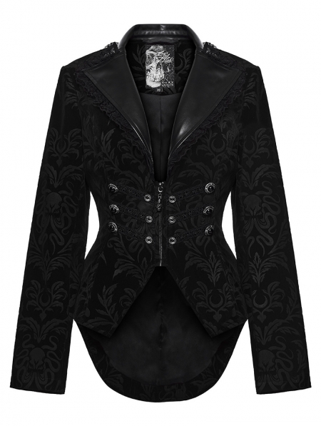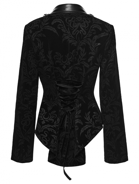 Black Gothic Vintage Print Velvet Coat for Women