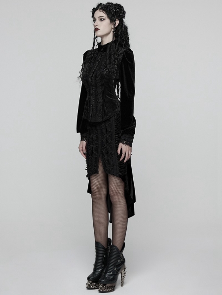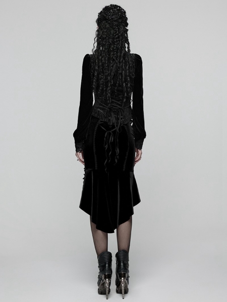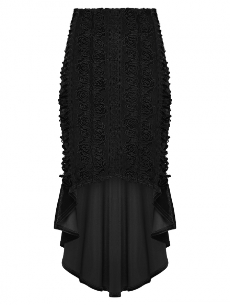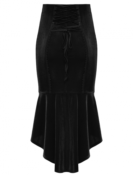 Black Gothic Retro Rose Lace Velvet Fishtail Skirt