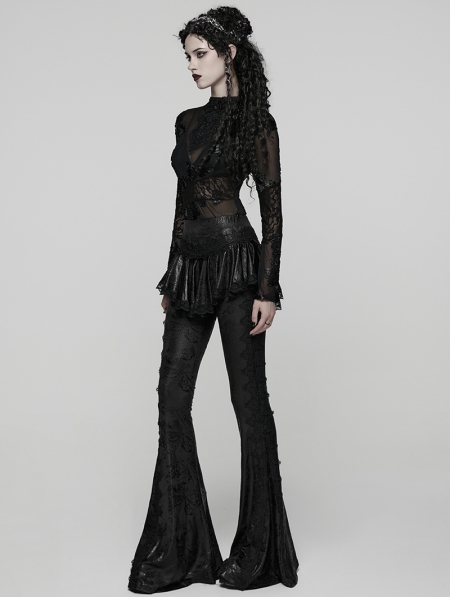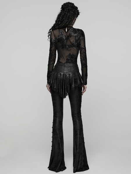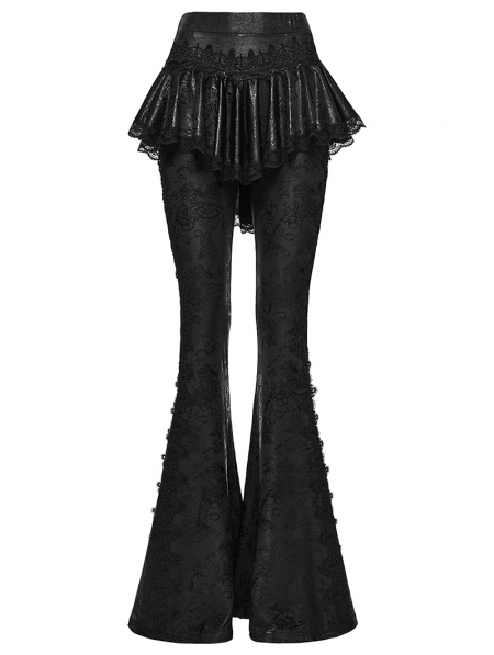 Black Gothic Lace Trim Flared Skirt Pants for Women