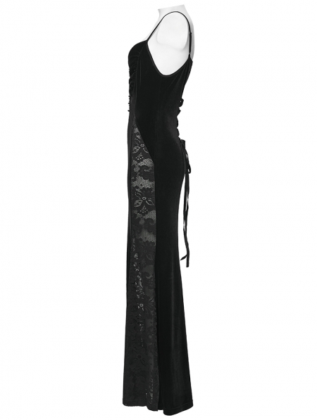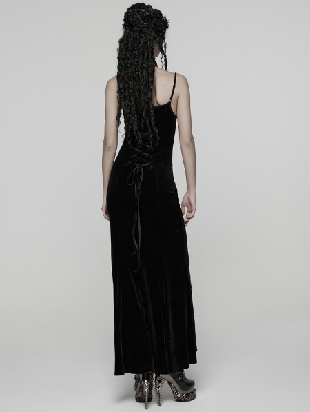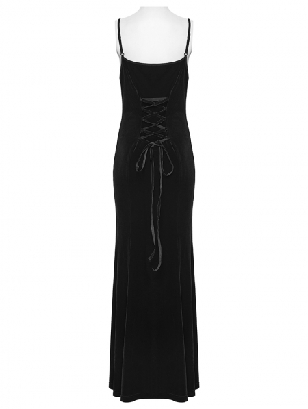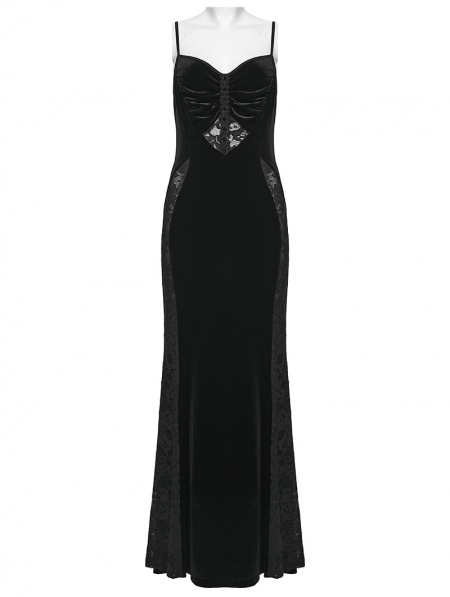 Black Gothic Dark Heart Ruched Velvet Long Slip Dress