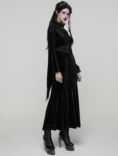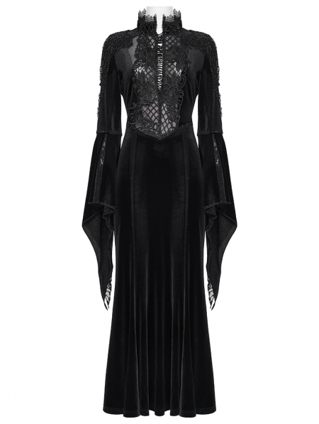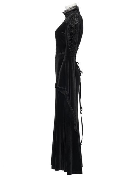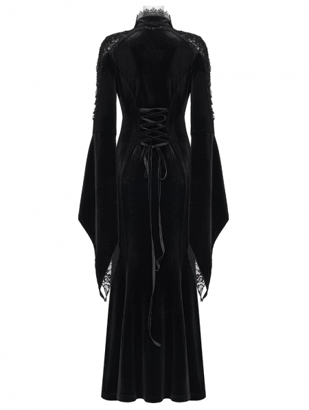 Black Retro Sexy Gothic Velvet Flared Sleeve Fishtail Long Dress