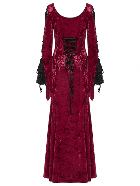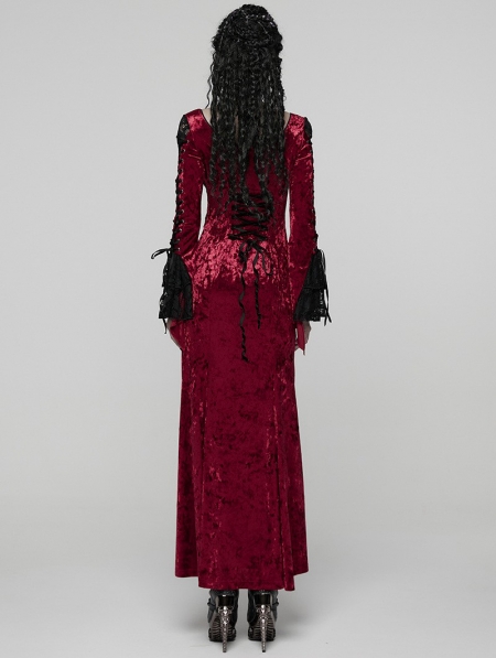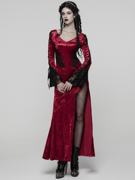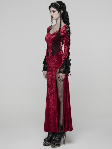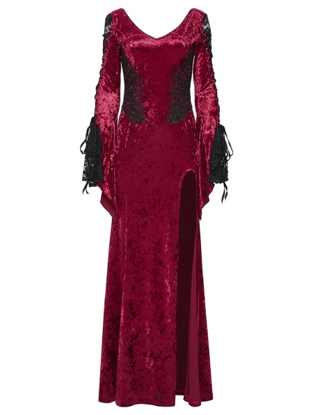 Red Gorgeous Gothic Velvet High Slit Fishtail Dress