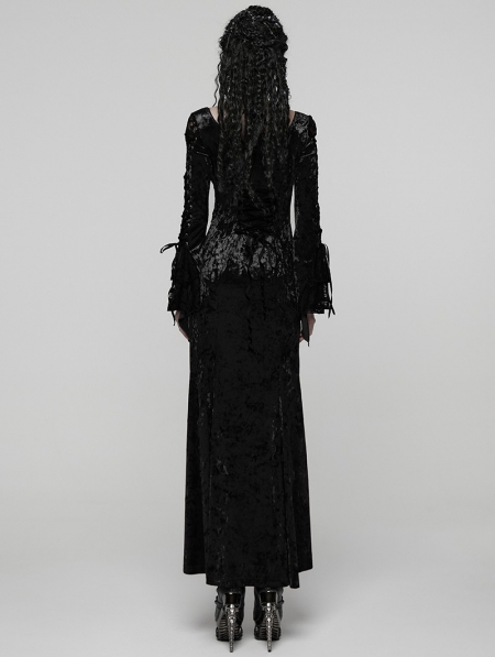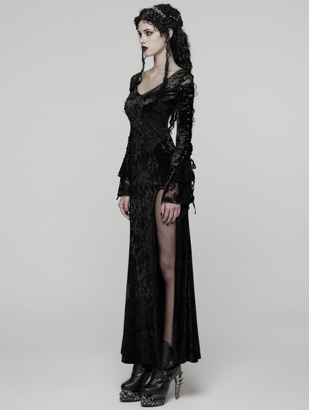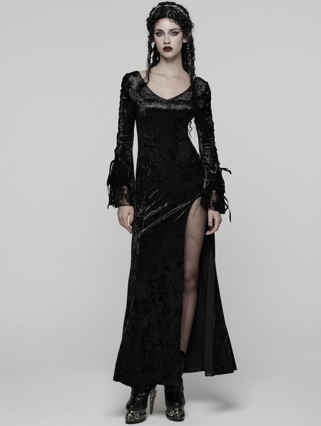 Black Gorgeous Gothic Velvet High Slit Fishtail Dress