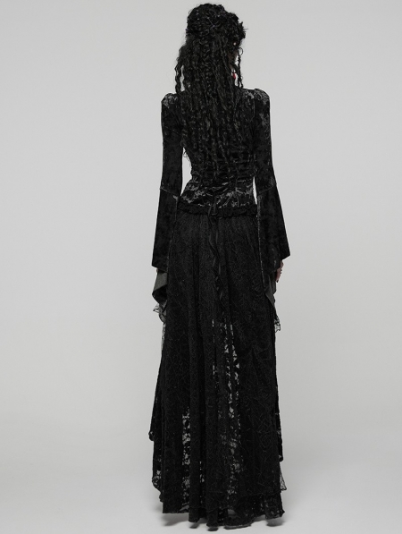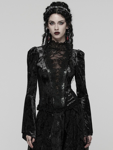 Black Sexy Gothic Gorgeous Velvet Lace Shirt for Women