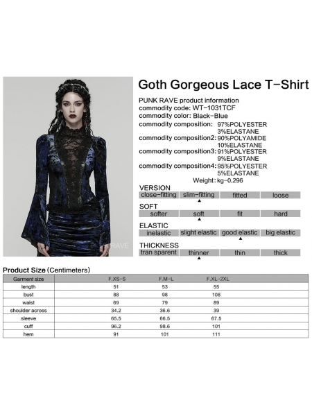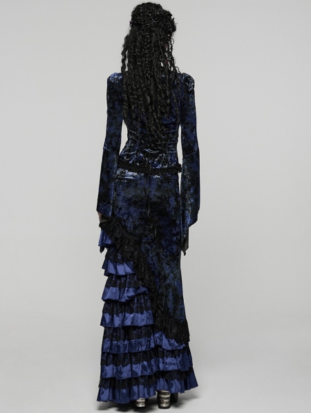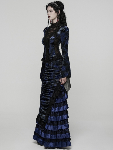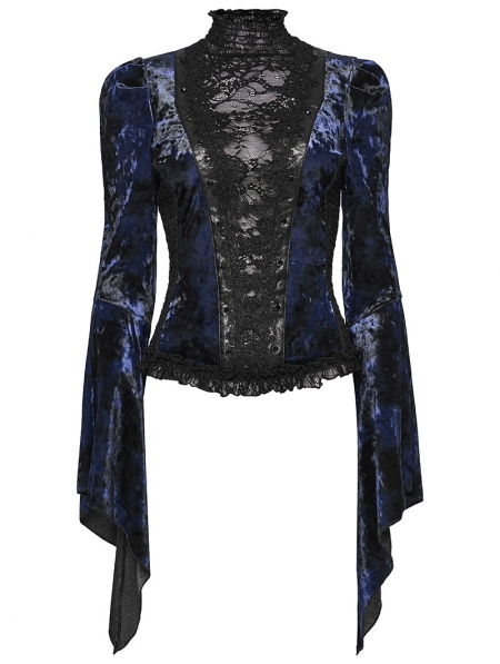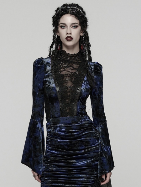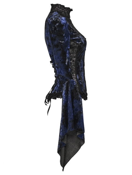 Black and Blue Sexy Gothic Gorgeous Velvet Lace Shirt for Women