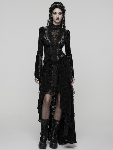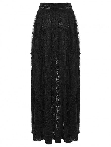 Black Gothic Spider Web Mesh Lace High-Low Skirt