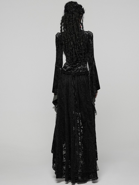 2. High-low design. The patchwork of lace and mesh creates rich visual effects, interpreting Gothic beauty.